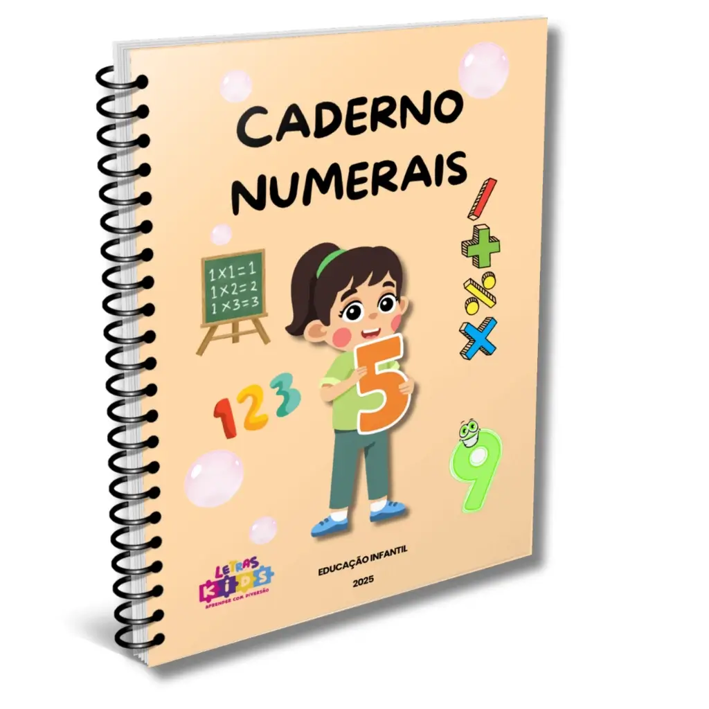 Caderno Numerais traz exercícios práticos que ajudam as crianças a compreender os números e as primeiras operações, fortalecendo a base do aprendizado matemático.